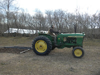 Max has been busy putting seeds in the ground, including peas, greens, carrots, spinach, radishes and spring turnips, rounding us out to about 2 acres planted so far. When he’s not driving the seeding tractor, he’s been out preparing the land for planting and spreading our back pasture with compost to get it ready for the cows.